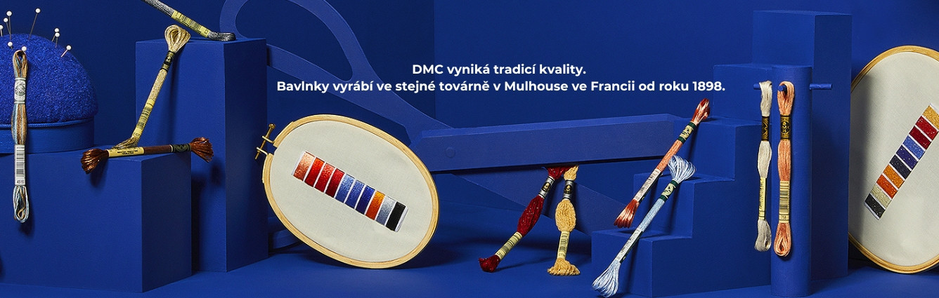 Bavlnky DMC patří mezi nejpoužívanější příze pro ruční výšivku. Jsou ceněny pro stálost barev, kvalitu zpracování a jednotnou barevnici, díky které je možné dlouhodobě a přesně pracovat podle předloh. Značka DMC je dlouhodobým standardem pro křížkovou i klasickou výšivku a používá se v návodech i předlohách po celém světě.