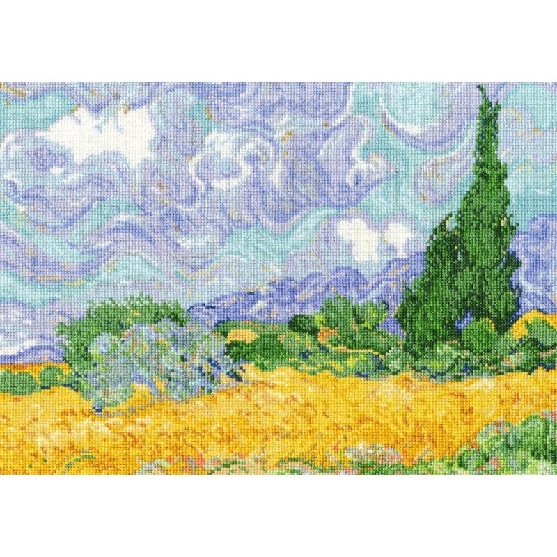 Sada pro křížkové vyšívání mistrovského díla Vincenta van Gogha A Wheatfield with Cypresses - Pšeničné pole s cypřiši