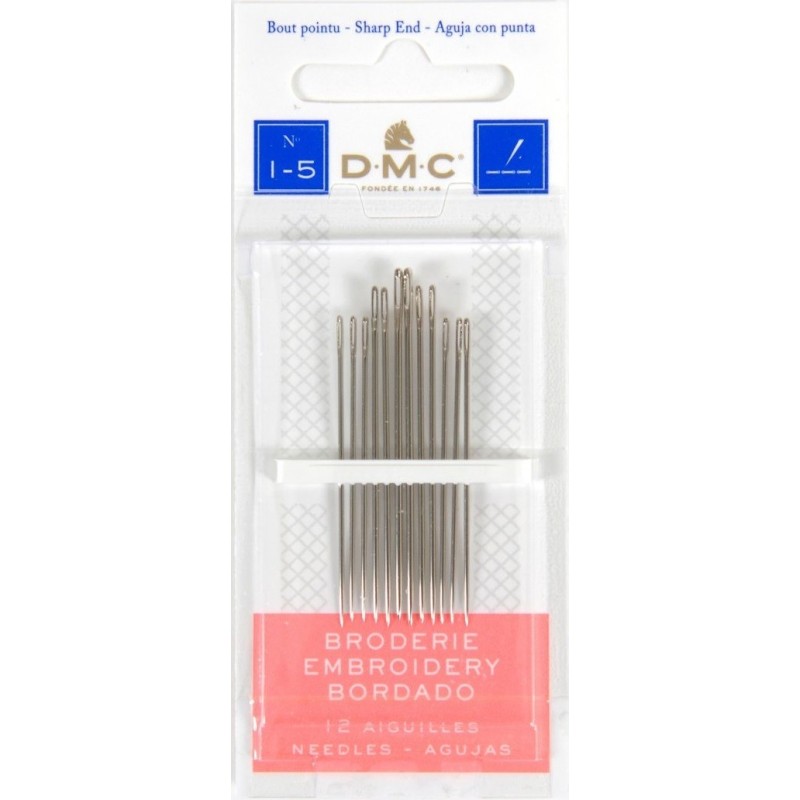 Vyšívací jehly s ostrou špičkou určené ke snadnému propíchnutí vyšívacích látek. Mají středně dlouhé až dlouhé ouško pro usnadnění navlékání několika pramenů vyšívacích přízí. Jehly jsou velmi kvalitní, vyrobené z prvotřídní oceli, odolné vůči oxidaci a korozi. Balené na kartách v univerzálních nebo smíšených kombinacích.