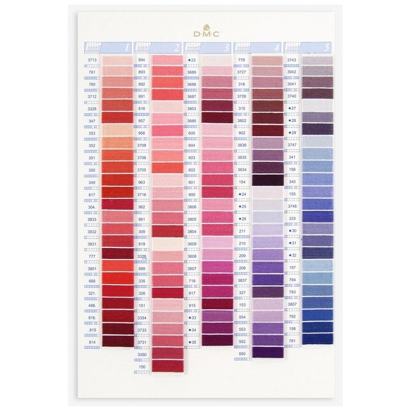 Více se dočtete v popisuBarevnice s 2 cm vzorky (kousky) všech odstínů níže uvedených vyšívacích přízí DMC patří mezi základní vyšívací příslušenství. Barevnice je užitečným pomocníkem při výběru správných odstínů vyšívacích přízí DMC pro výšivky.