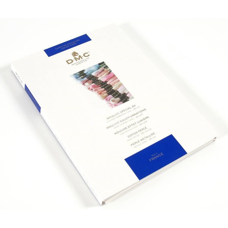 Barevnice (vzorník) s 2 cm vzorky odstínů vyšívacích přízí DMC