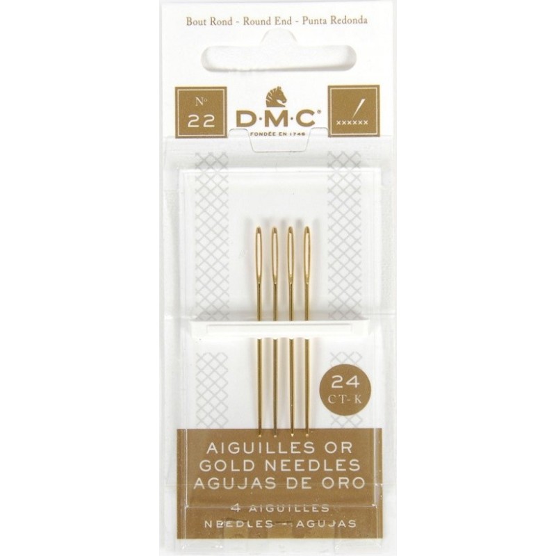 Pozlacené vyšívací jehly (4 ks) s tupou špičkou vel. 22 DMC